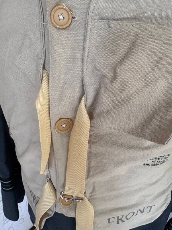This item is our best seller by far, made of quality materials, correct buckles and buttons, metal zip, adjustable tapes. Correct period stamping and double stitching to make sure your life vest looks and feels like an original.